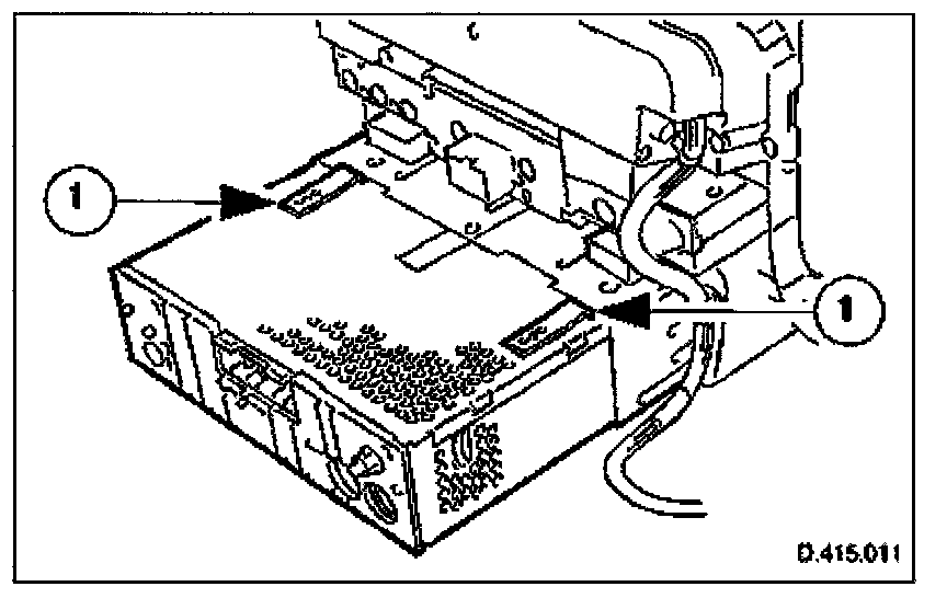 1. Withdraw radio console, remove radio from console and remove radio retaining plate.