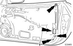 - Release shield from spring clip at rear and remove shield from door.
