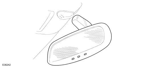 The interior rear view mirror is an electrochromic unit that automatically darkens to prevent glare from following vehicle lights. This automatic function is selected by pressing the switch at the bottom of the mirror. Pressing the switch again cancels this function. An LED then illuminates when automatic dipping is operative.
