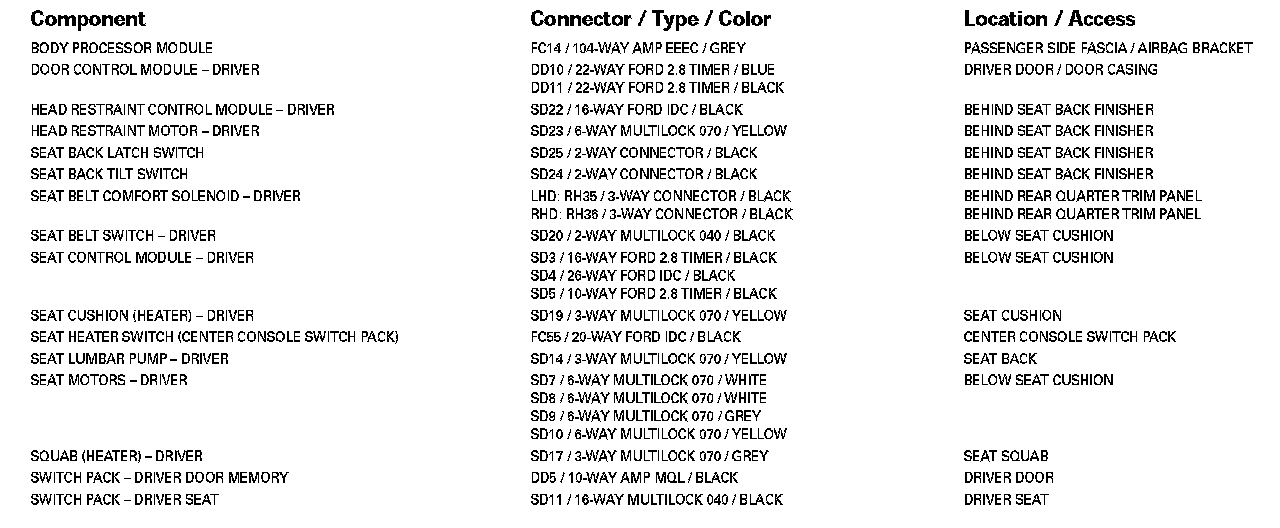 Refer to Vehicle / Locations for detailed information and illustrations regarding the location and identification of harnesses, relays, grounds and control modules. Locations