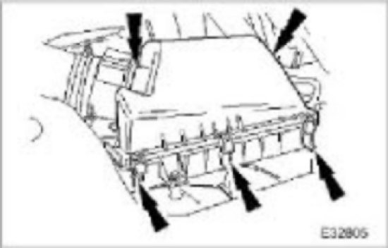 Release the five clips which secure the air cleaner cover.
