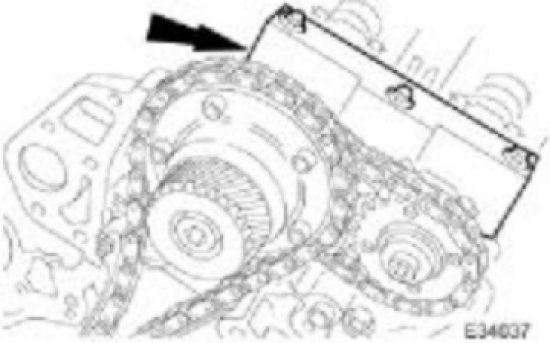 Attach the primary chain over the variable camshaft timing oil control unit (or intake camshaft sprocket - vehicles fitted with supercharger). There must be no slack on the drive side of the primary chain and the variable camshaft timing oil control unit must not be rotated on the camshaft (or the tensioning tool may not fit).