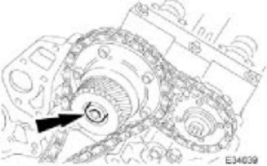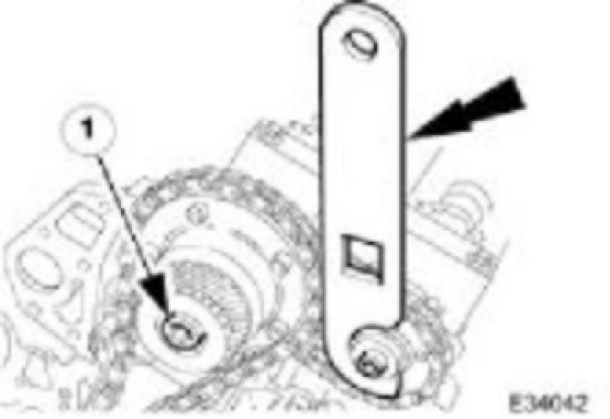 Whilst still applying the opposing force to the sprocket and chain (using 303 - 532), check that the wedges are still in place, carry out the variable camshaft timing oil control unit retaining bolt tightening sequence.