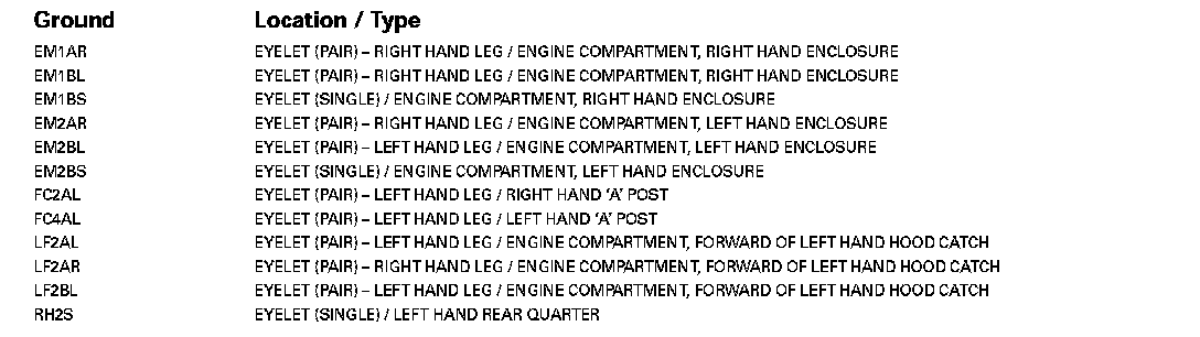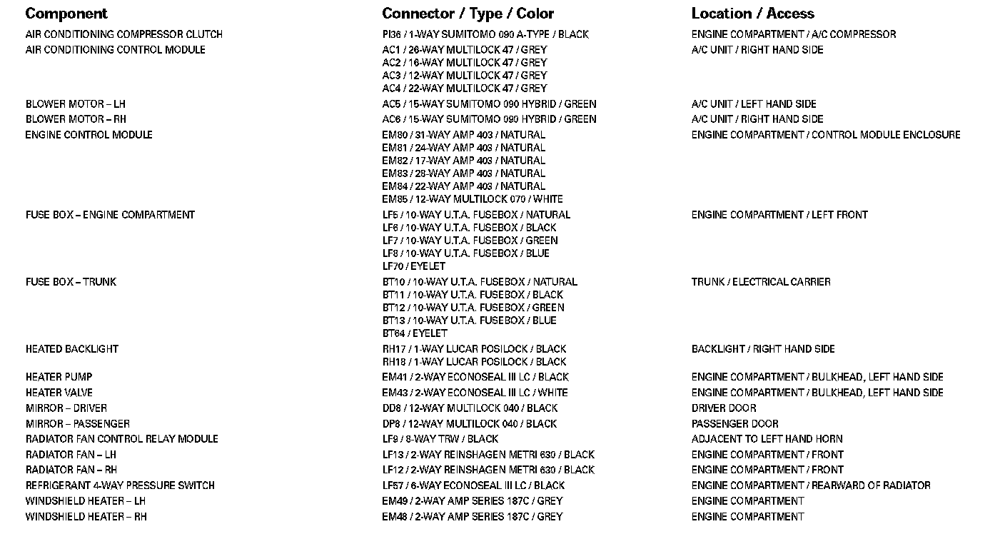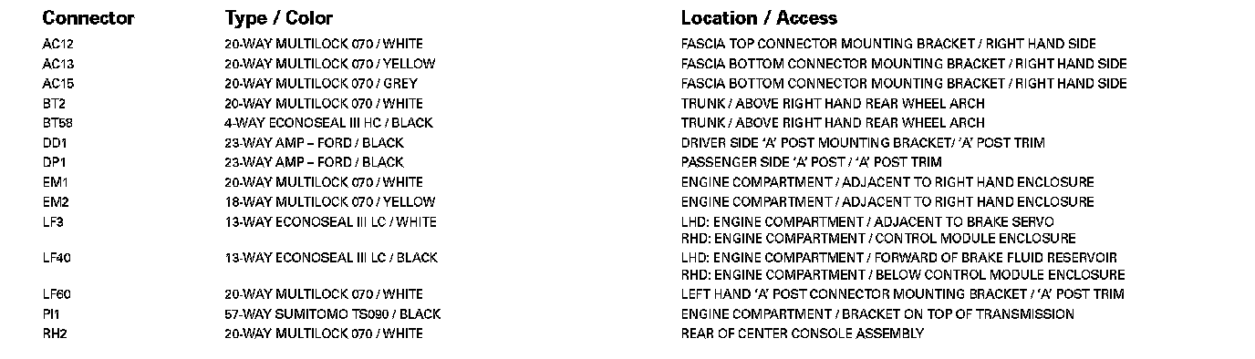 Refer to Vehicle / Locations for detailed information and illustrations regarding the location and identification of harnesses, relays, grounds and control modules. Locations