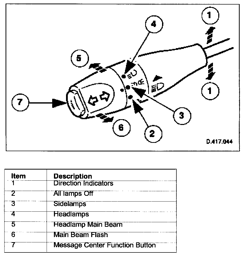 - NOTE: The main beam only operates with the dipped headlamps switched 'ON'.
