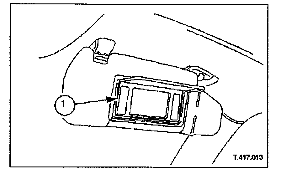 1. Rotate the sun visor down and open the vanity mirror flap.