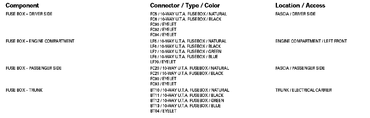 Refer to Vehicle / Locations for detailed information and illustrations regarding the location and identification of harnesses, relays, grounds and control modules. Locations