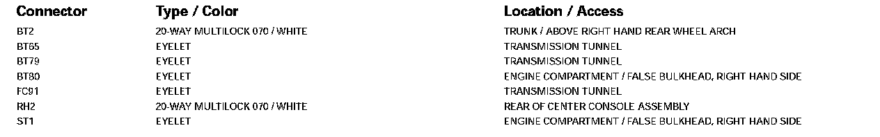 For detailed informations and illustrations regarding the location and identification of control modules pins, refer to Vehicle / Diagrams / Connector Views. Connector Views