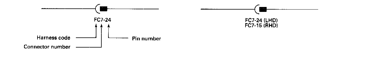 Where the pin number differs from LHD to RHD, the connector number will be further identified by (LHD) or (RHD).