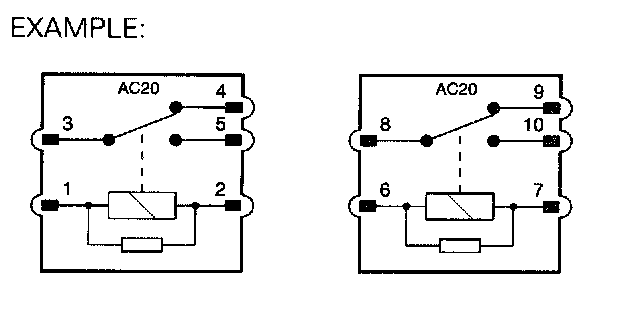 Relay connector numbers are shown within the relay. The connector number is shown in the upper portion of the relay; the pin (terminal) number is shown adjacent to the pin. Certain relays are paired and share a modular connector. In this instance, the connector number remains the same for both relays while the pin numbers of the second relay are identified by numbers 6 - 10.