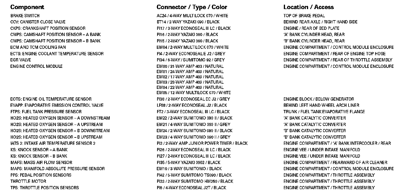 Refer to Vehicle / Locations for detailed information and illustrations regarding the location and identification of harnesses, relays, grounds and control modules. Locations