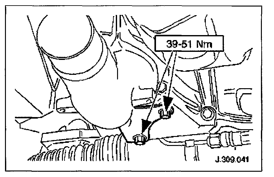 - Install, but do not tighten, the mounting bracket securing bolts. (Leave loose until the nuts securing the downpipe to the exhaust manifold are fitted and tightened.)