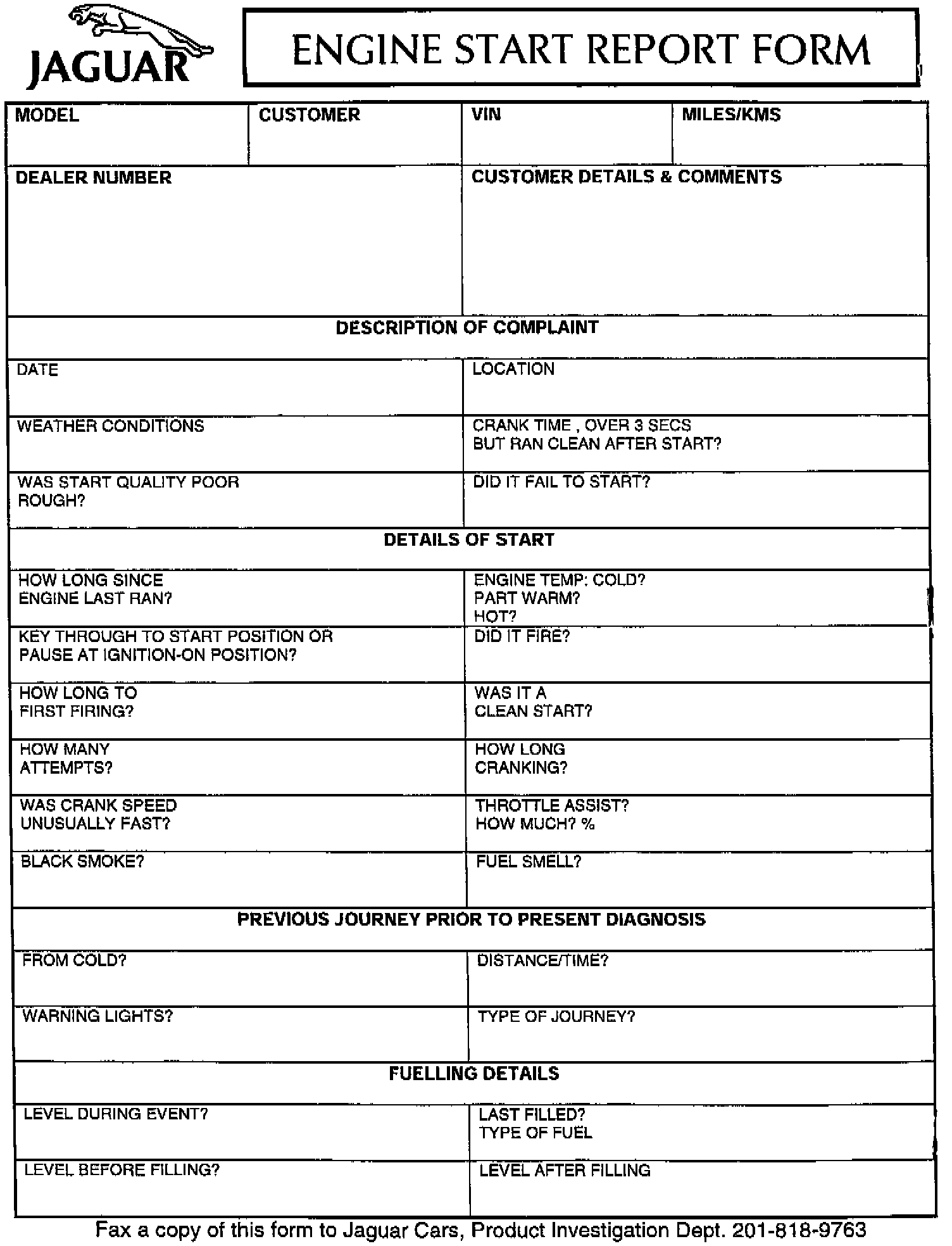 To assist in a methodical diagnosis, this bulletin includes an Engine Start Report Form which should be copied and filled out.