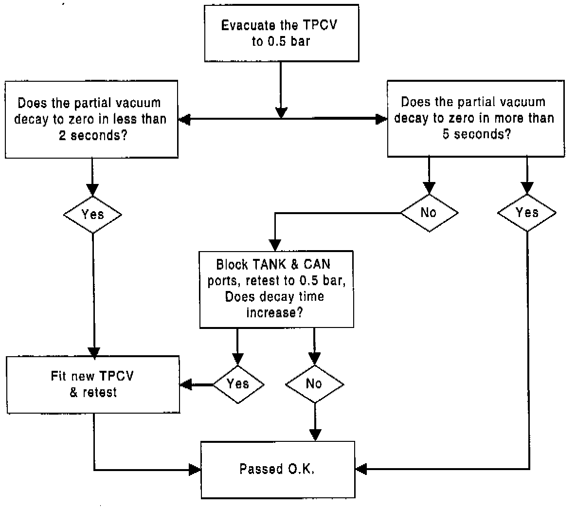 Connect a hand vacuum tester to the TPCV vacuum port, as shown in Illustration 1 and follow the flow chart.