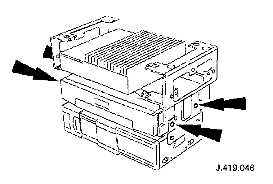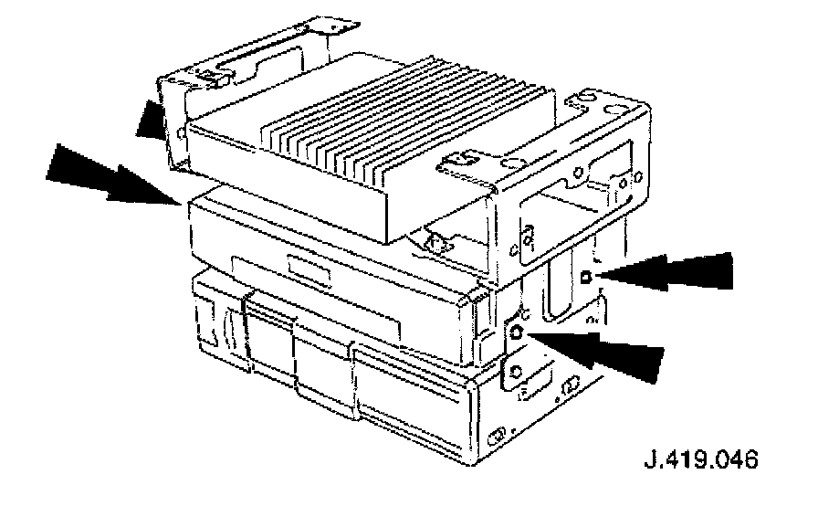 4. Remove four bolts securing audio/DVD reader module stack to mounting frame.