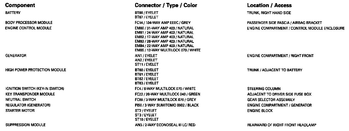 This information is included to assist the user in identifying and locating components, connectors and grounds.