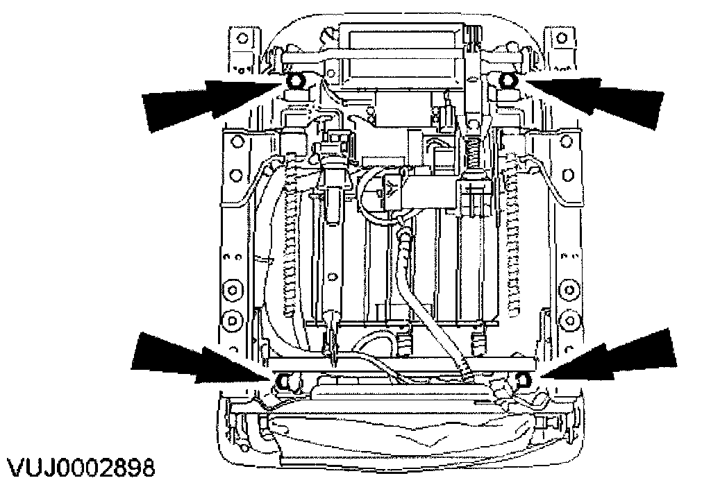 16. Connect the seat adjustment electrical connectors and the seat belt buckle electrical connector.
