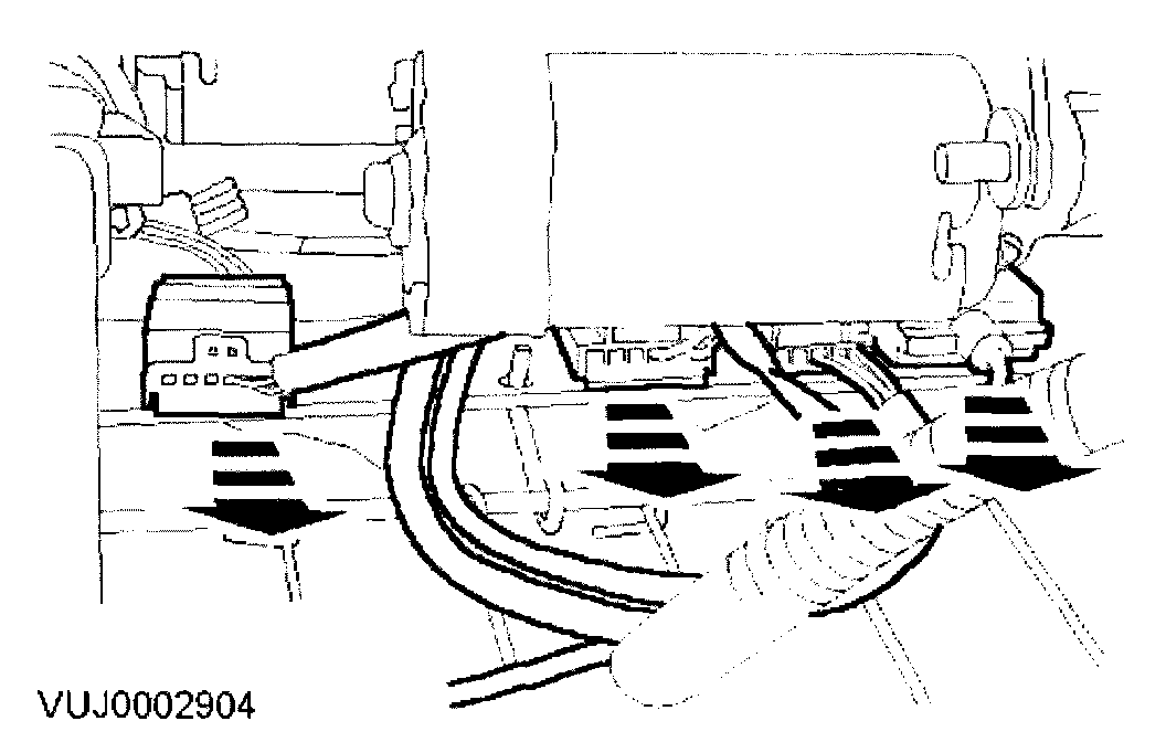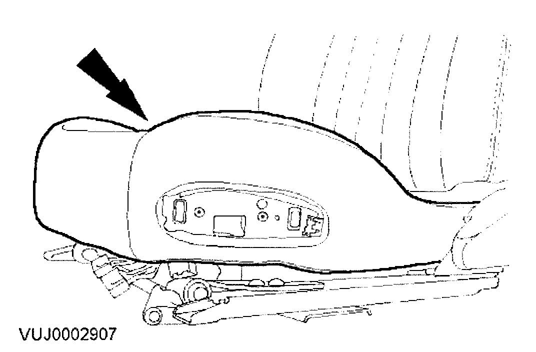 10. Detach the seat adjustment electrical connectors and the seat belt buckle electrical connector.