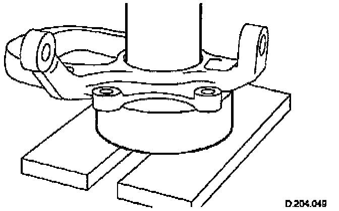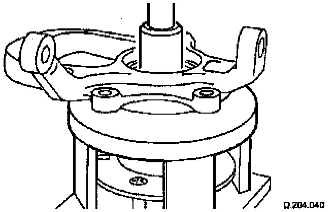 b. Press in the bearing assembly from the rear of the vertical link using the bearing installation press tool No. JD 238, or equivalent, on the bearing outer ring.