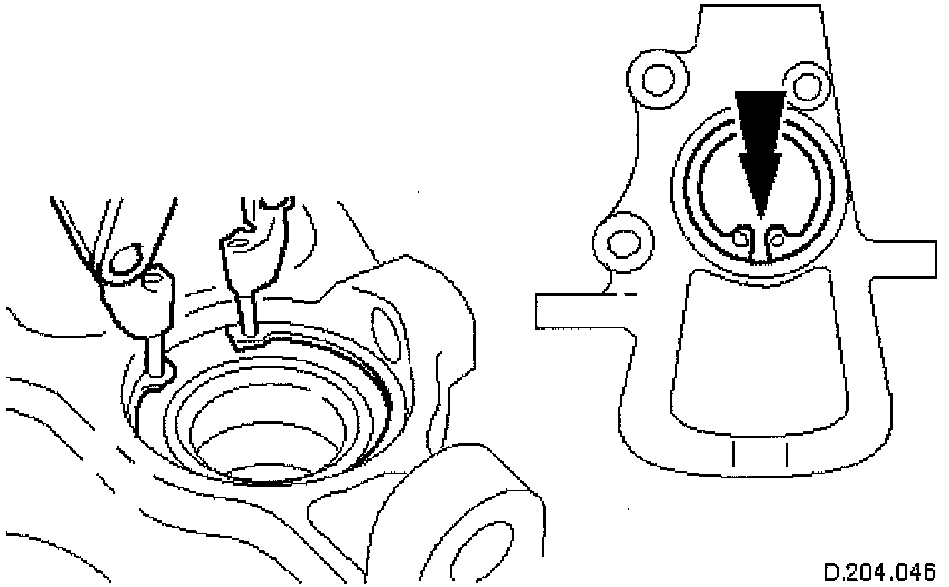 ^ The ears of the circlip must be located in the lowest position to permit water drainage.