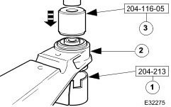 1. Position special tool under crossbeam, and align to bush aperture.