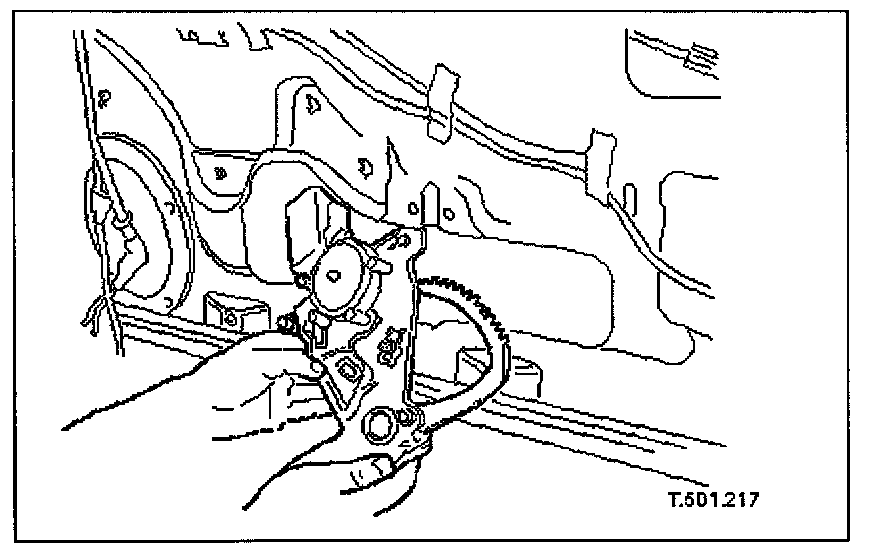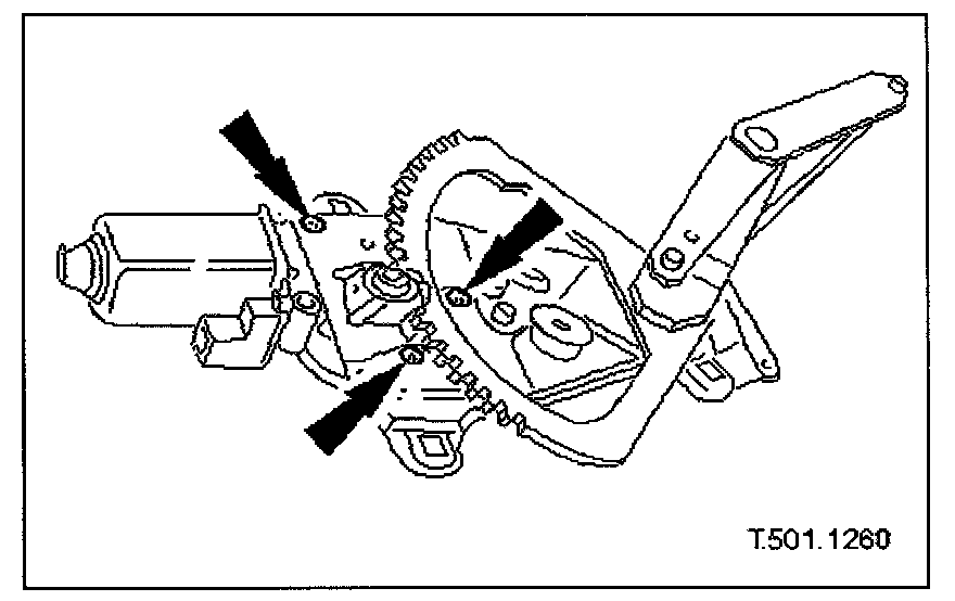 4. Fit but do not tighten motor to door securing screws and regulator channel securing nut.
