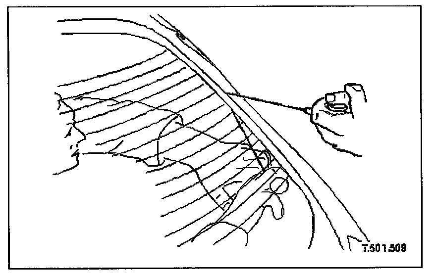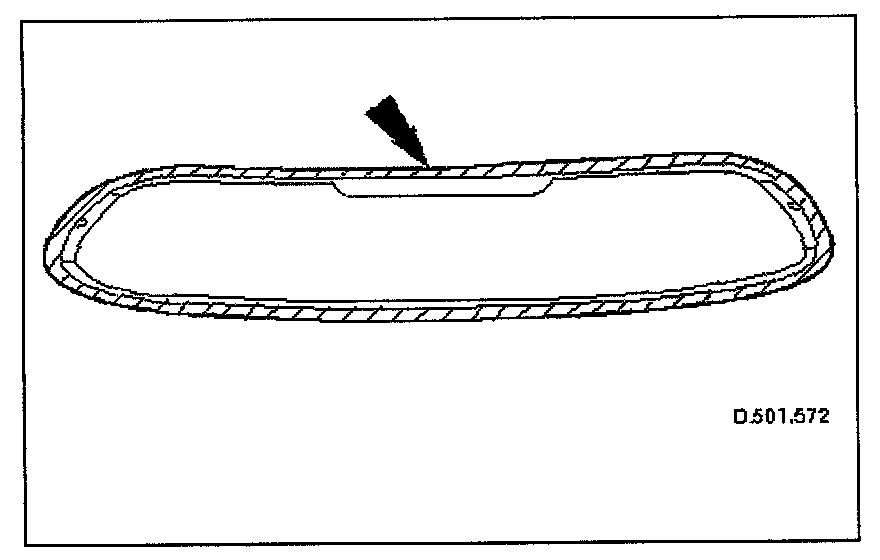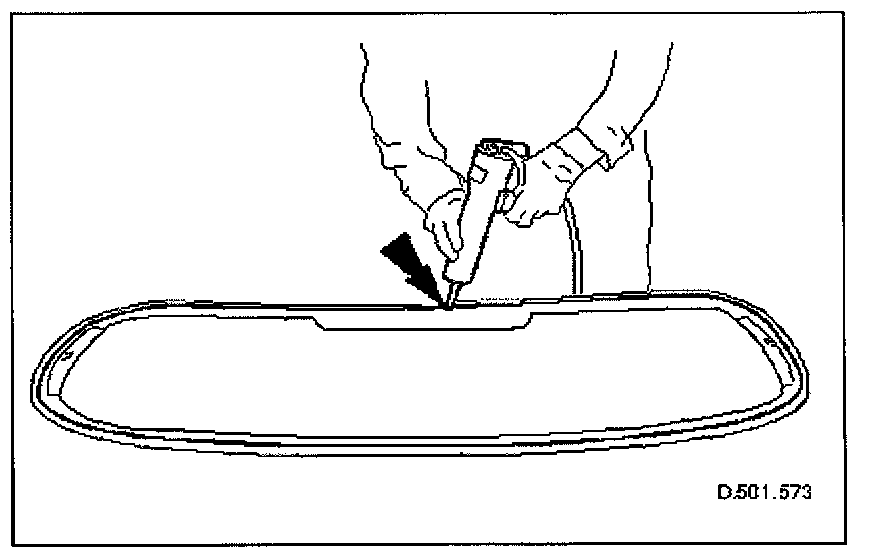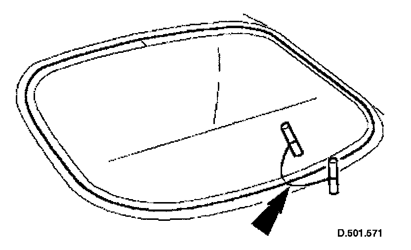 13. Using a pointed tool, penetrate backlight Betaseal at lower central position, ensuring that contact is not made with fabric or glass.