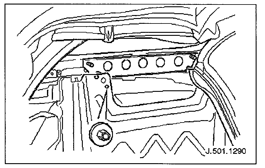8. Slacken and remove nuts securing squab panel stiffener bracket to BIW and remove bracket from vehicle.