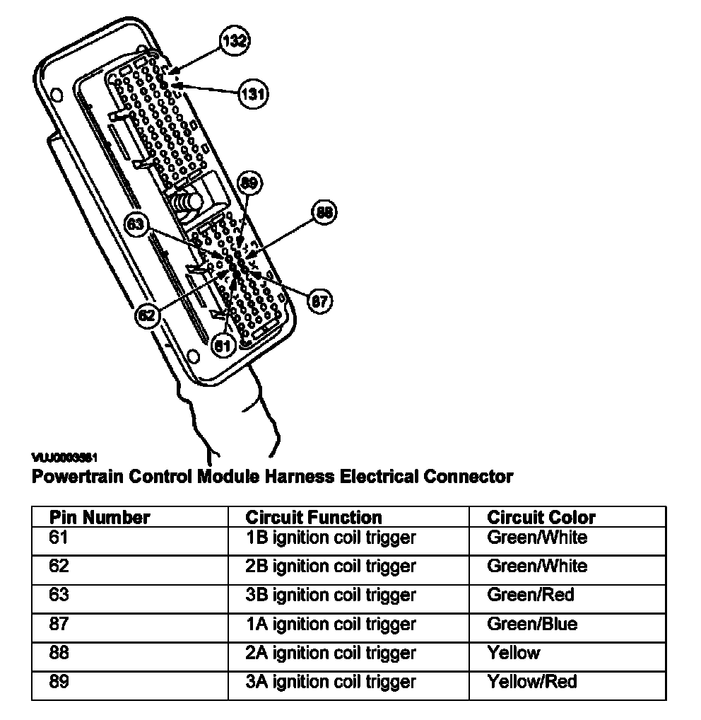 1A, 2A, 3A, 1B, 2B, 3B Ignition Coils: