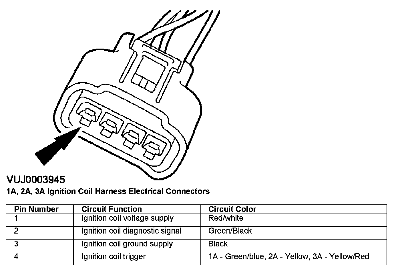 1A, 2A, 3A Ignition Coil Harness Electrical Connectors: