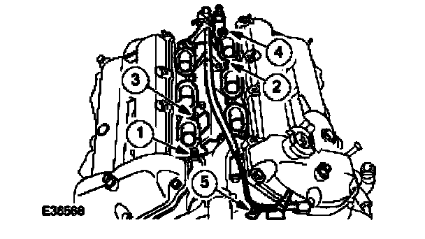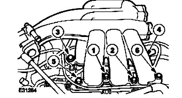 NOTE: The intake manifold retaining bolts in position 1, 4 and 5 are longer than the retaining bolts in position 2, 3 and 6.