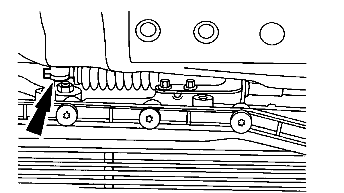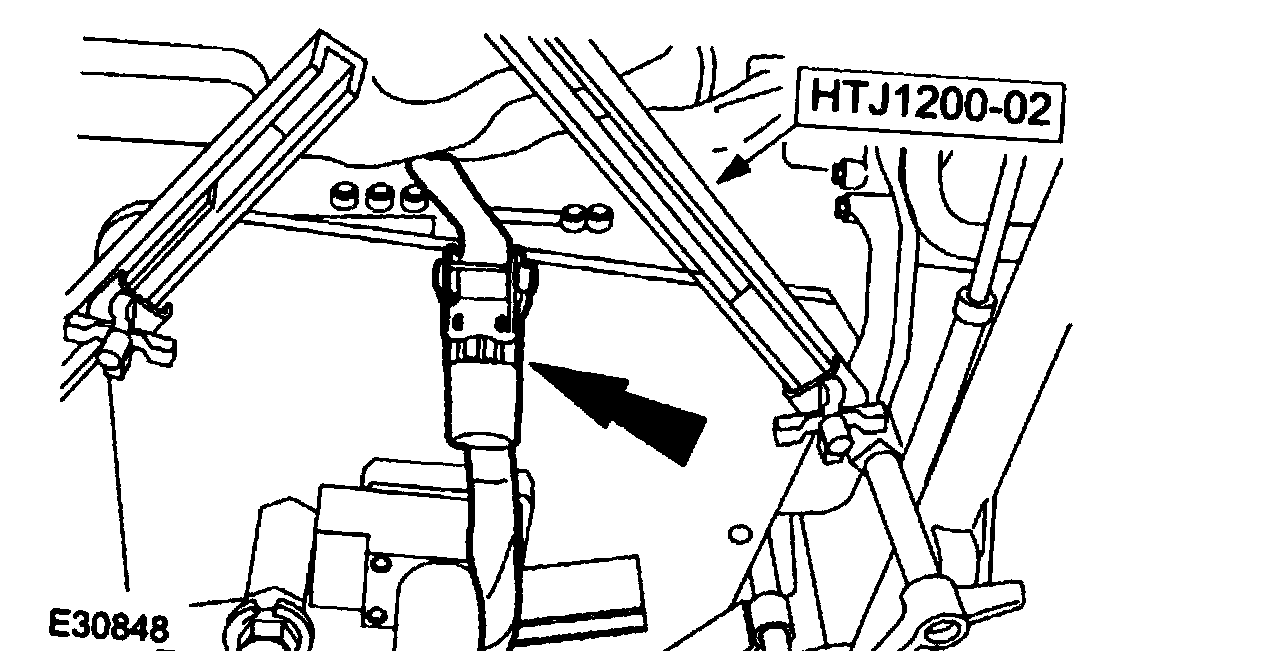 CAUTION: Make sure the transmission fluid cooler tubes are not removed from the automatic transmission by using a pry bar. Failure to follow this instruction may result in damage to the vehicle.