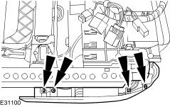 - Remove the front seat outer trim panel retaining screws.