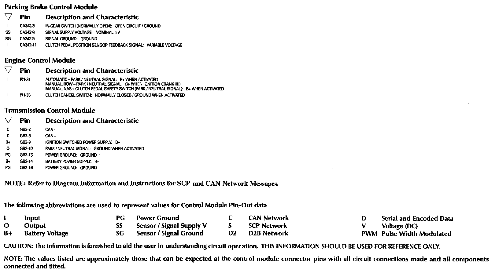 Control Module Pin-Out Information: