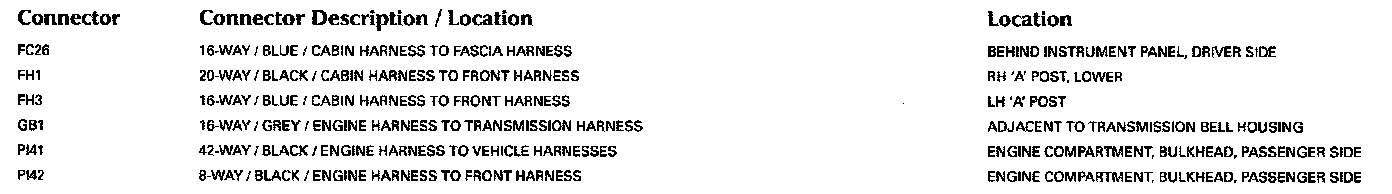 Refer to Vehicle/Locations for detailed information and illustrations regarding the location and identification of harnesses, relays, grounds and control modules. Locations