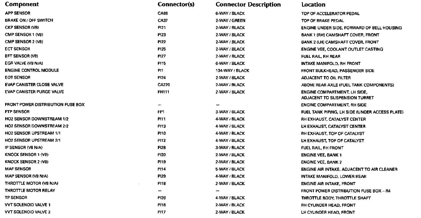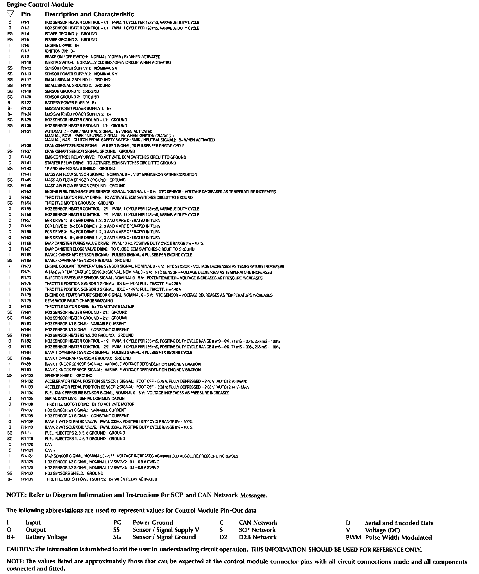 Control Module Pin-Out Information: