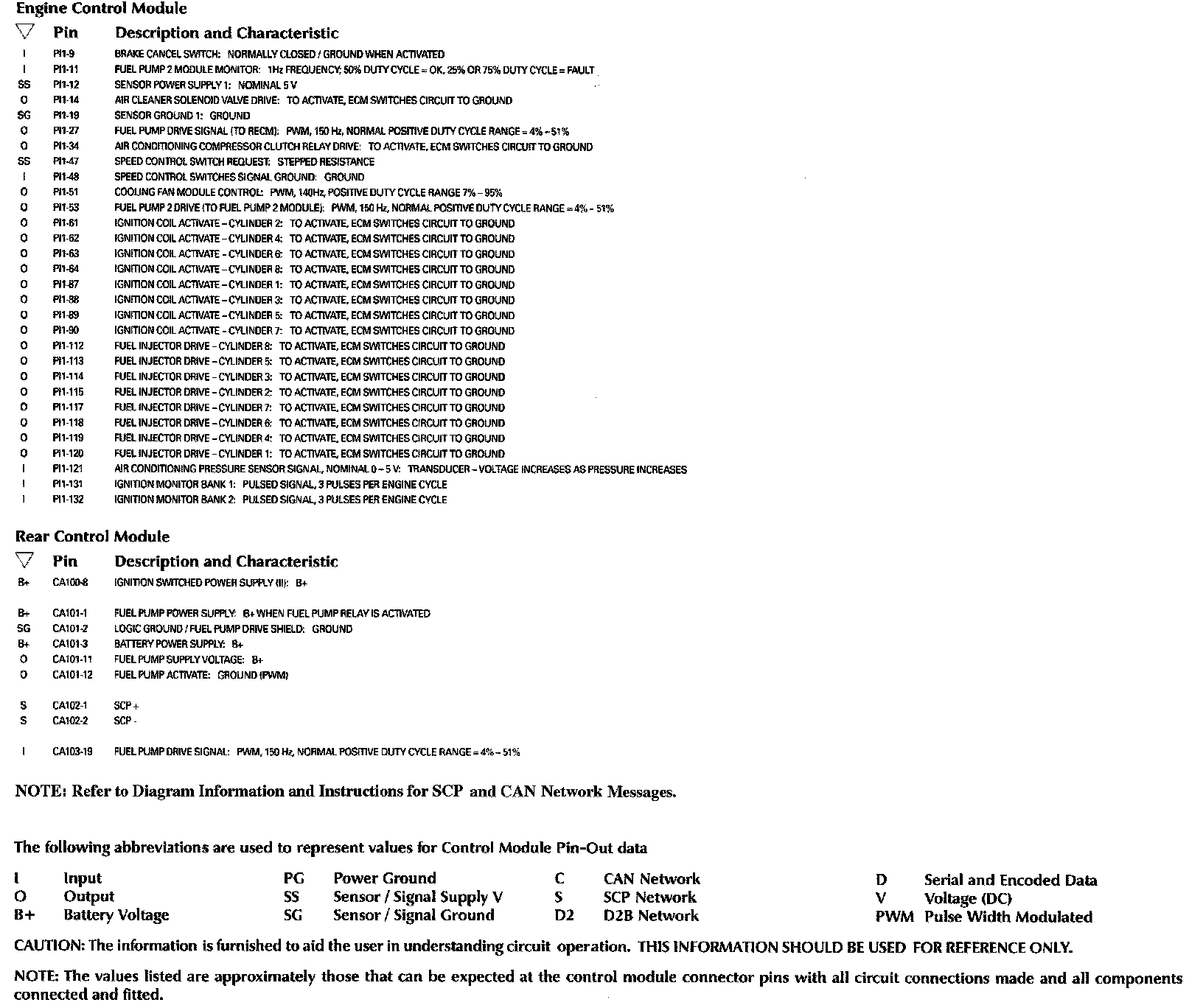 Control Module Pin-Out Information: