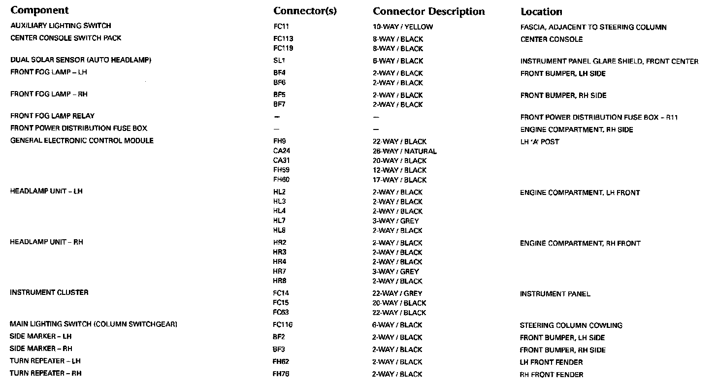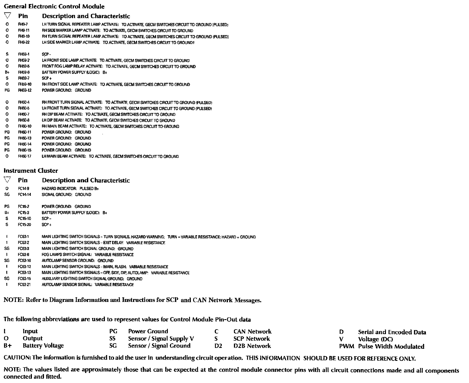 Control Module Pin-Out Information: