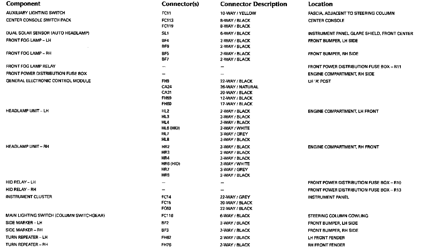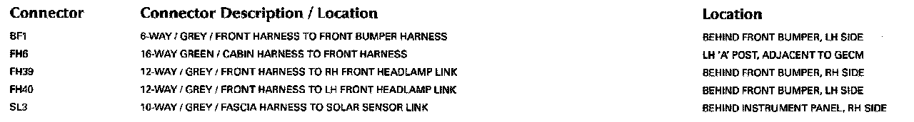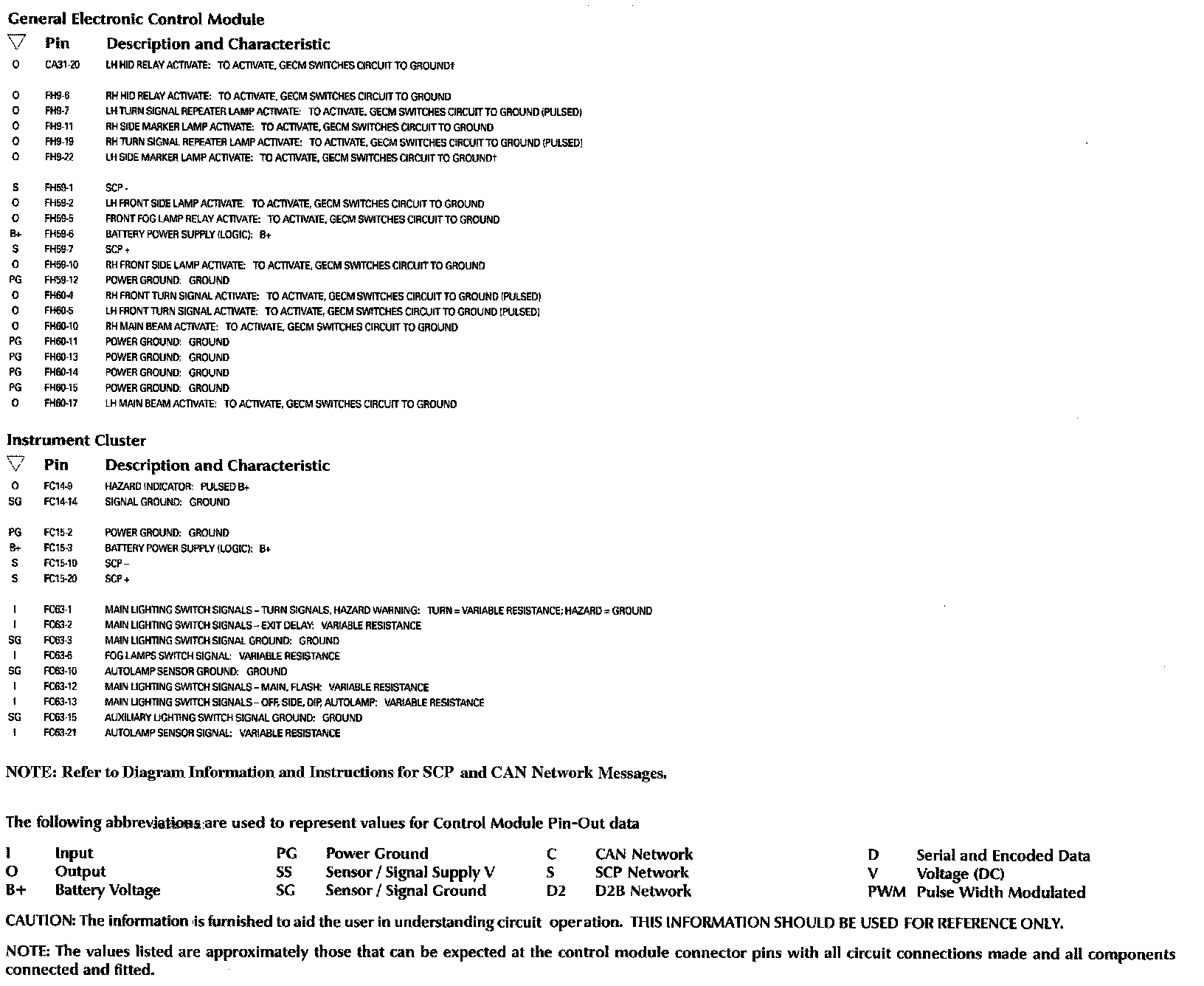 Control Module Pin-Out Information: