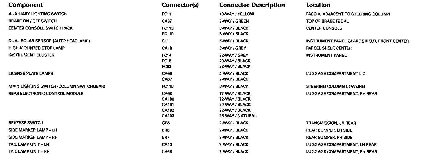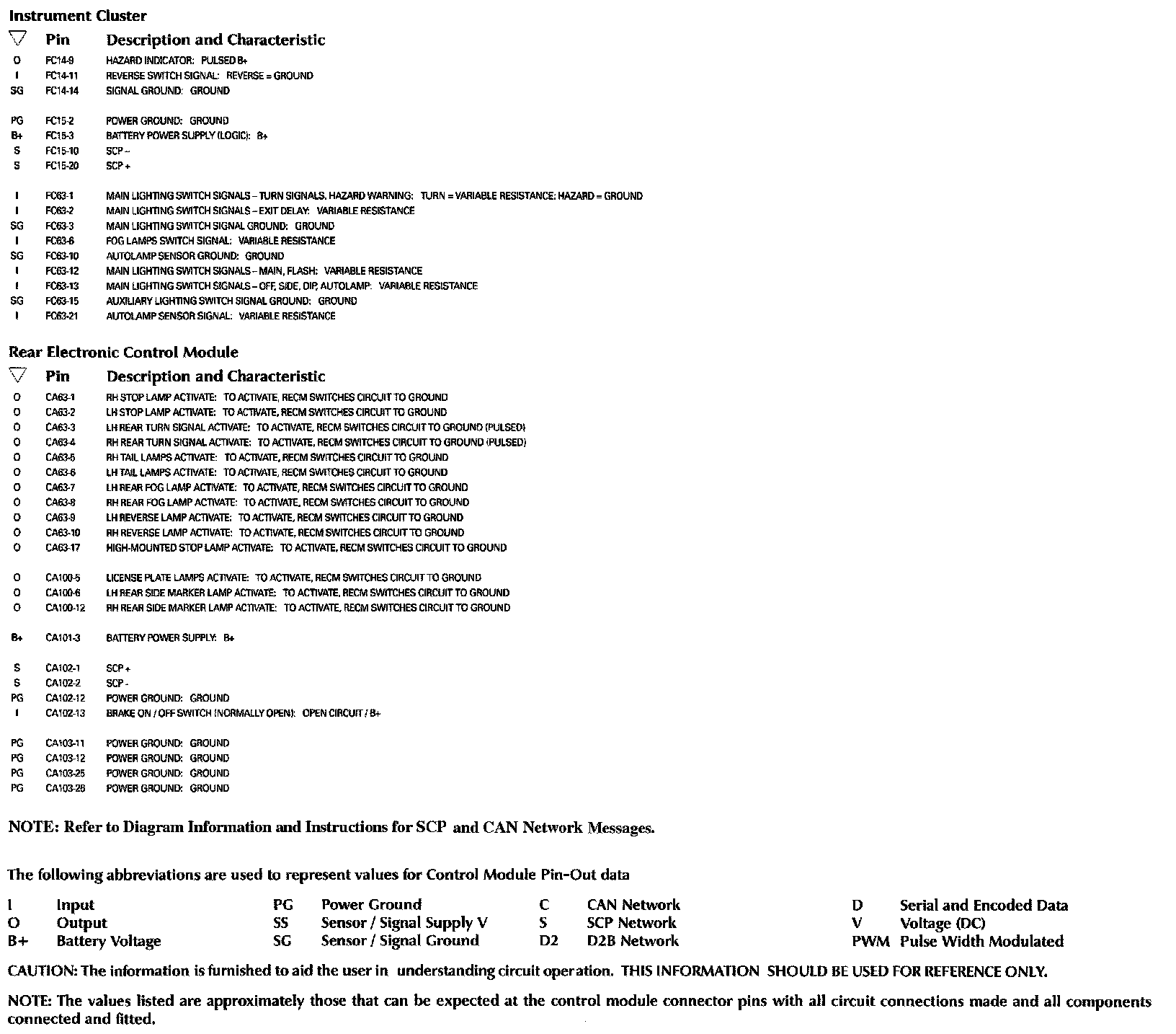Control Module Pin-out Information:
