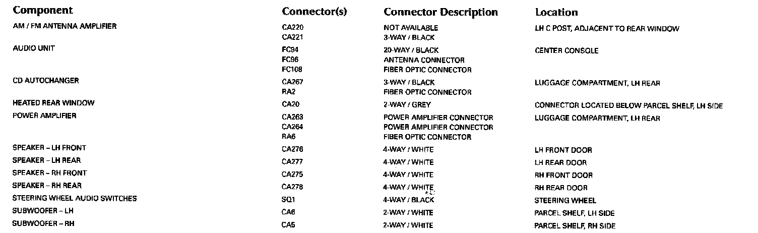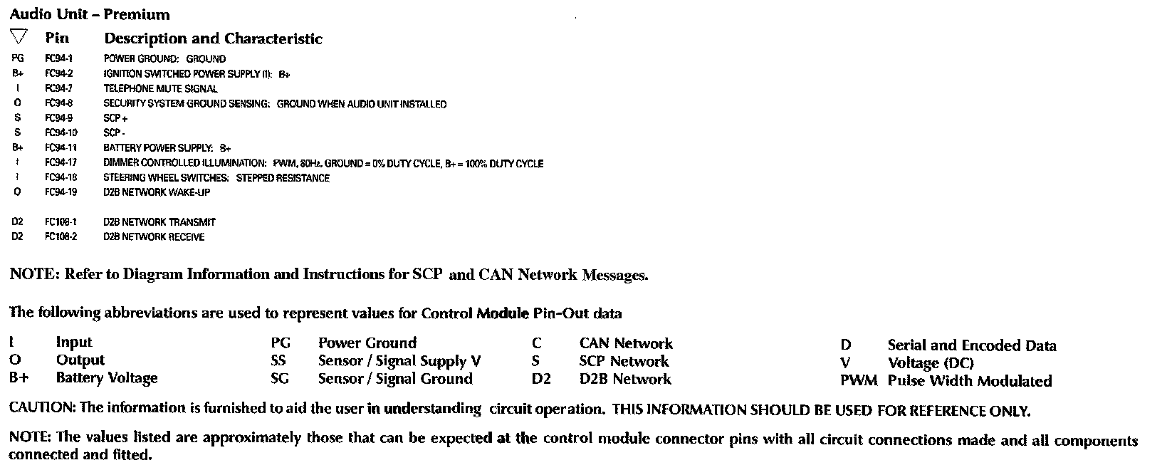Control Module Pin-Out Information: