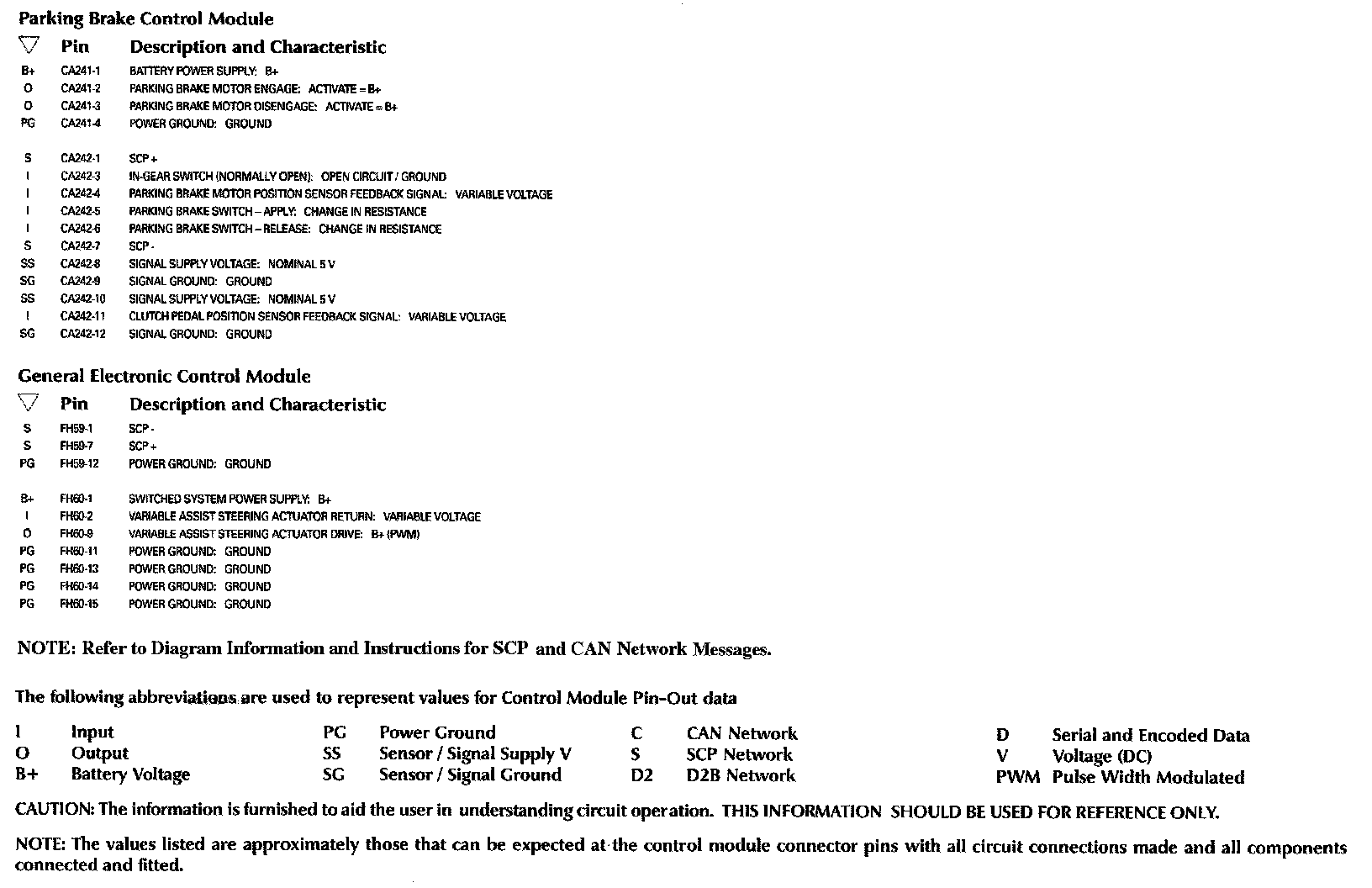 Control Module Pin-Out Information: