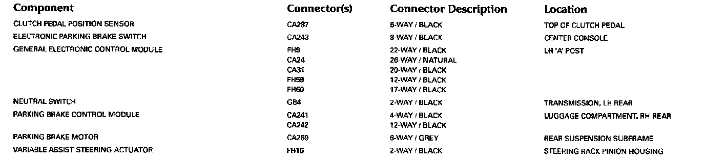 For detailed informations and illustrations regarding the location and identification of control modules pins, refer to Vehicle/Diagrams/Connector Views. Connector Views