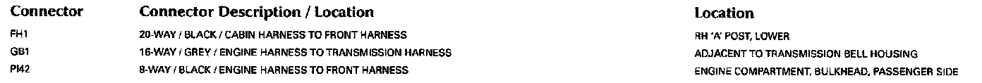 Refer to Vehicle/Locations for detailed information and illustrations regarding the location and identification of harnesses, relays, grounds and control modules. Locations