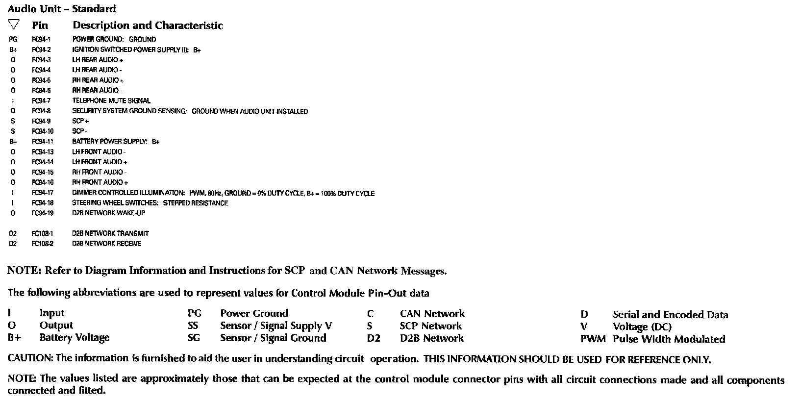 Control Module Pin-Out Information: