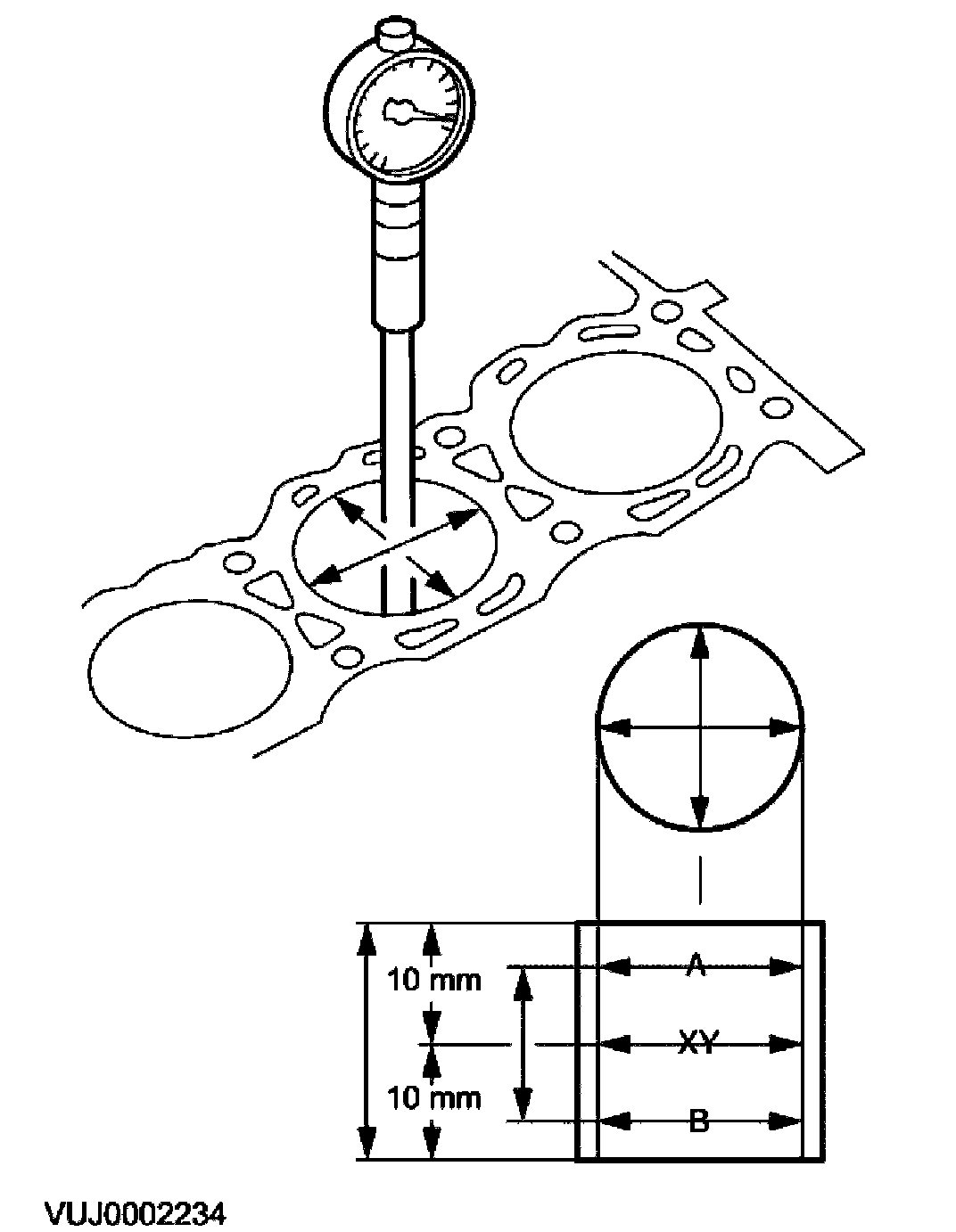 Measure the cylinder bore with an internal micrometer.