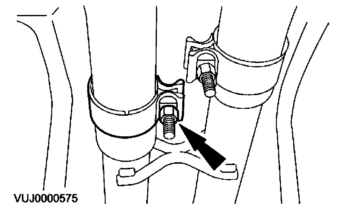 Loosen both catalytic converter retaining clamps.