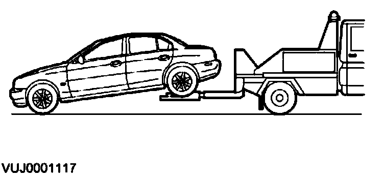 CAUTION: A vehicle with a defective transmission must be towed by rear suspended tow.