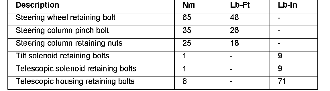 Steering Column: Specifications