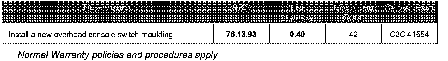 Situation: An overhead console switch service kit has been introduced as a lower level service part for issues with the buttons for the overhead console.